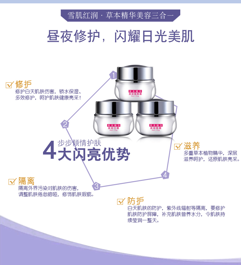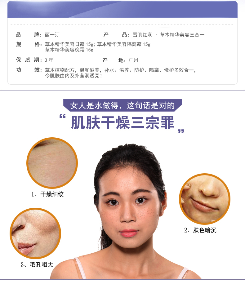 丽一汀雪肌红润三合一面霜套装隔离霜补水保湿提亮肤色套盒正品