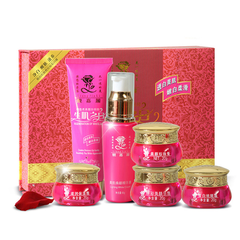 潘姿冰巧正品香港靓嘉丽白里透红生肌之白五合一美颜套装去斑霜