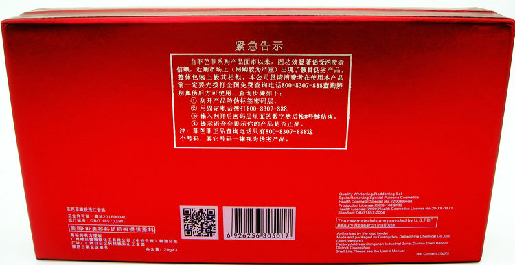 注:菲芭菲正品查询电话只有800-8307-888,其它号码一律视为伪劣产品。