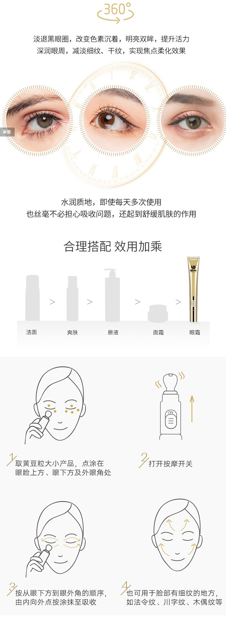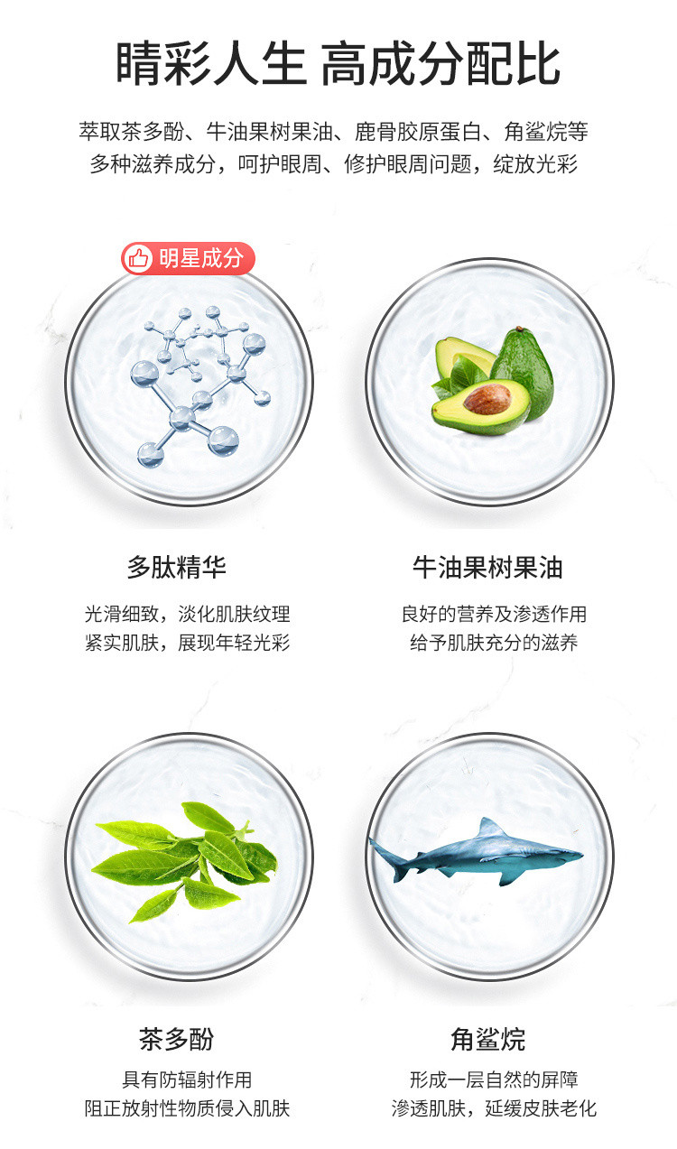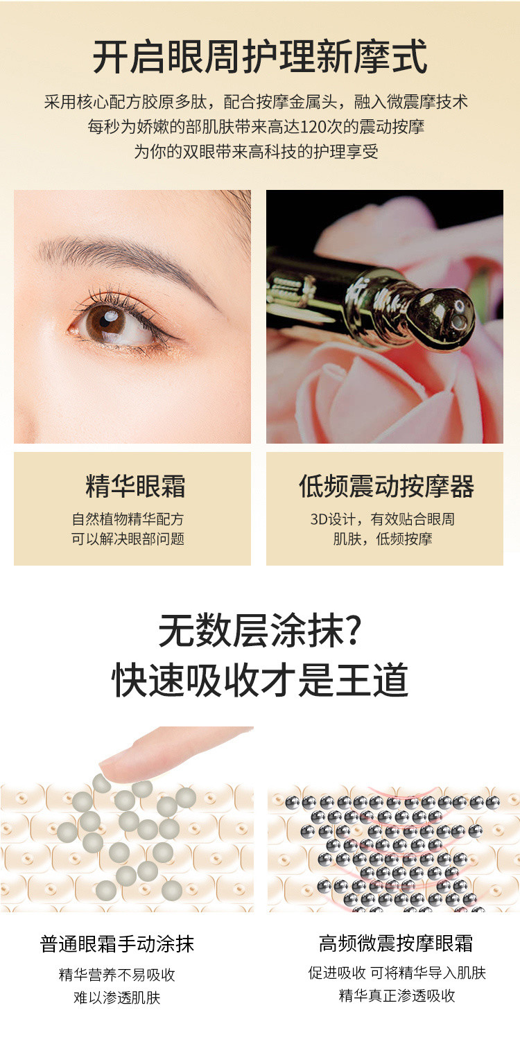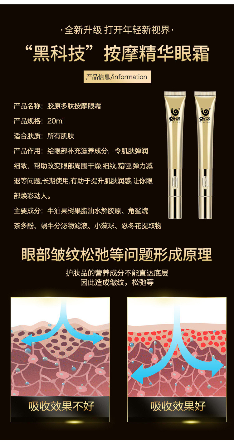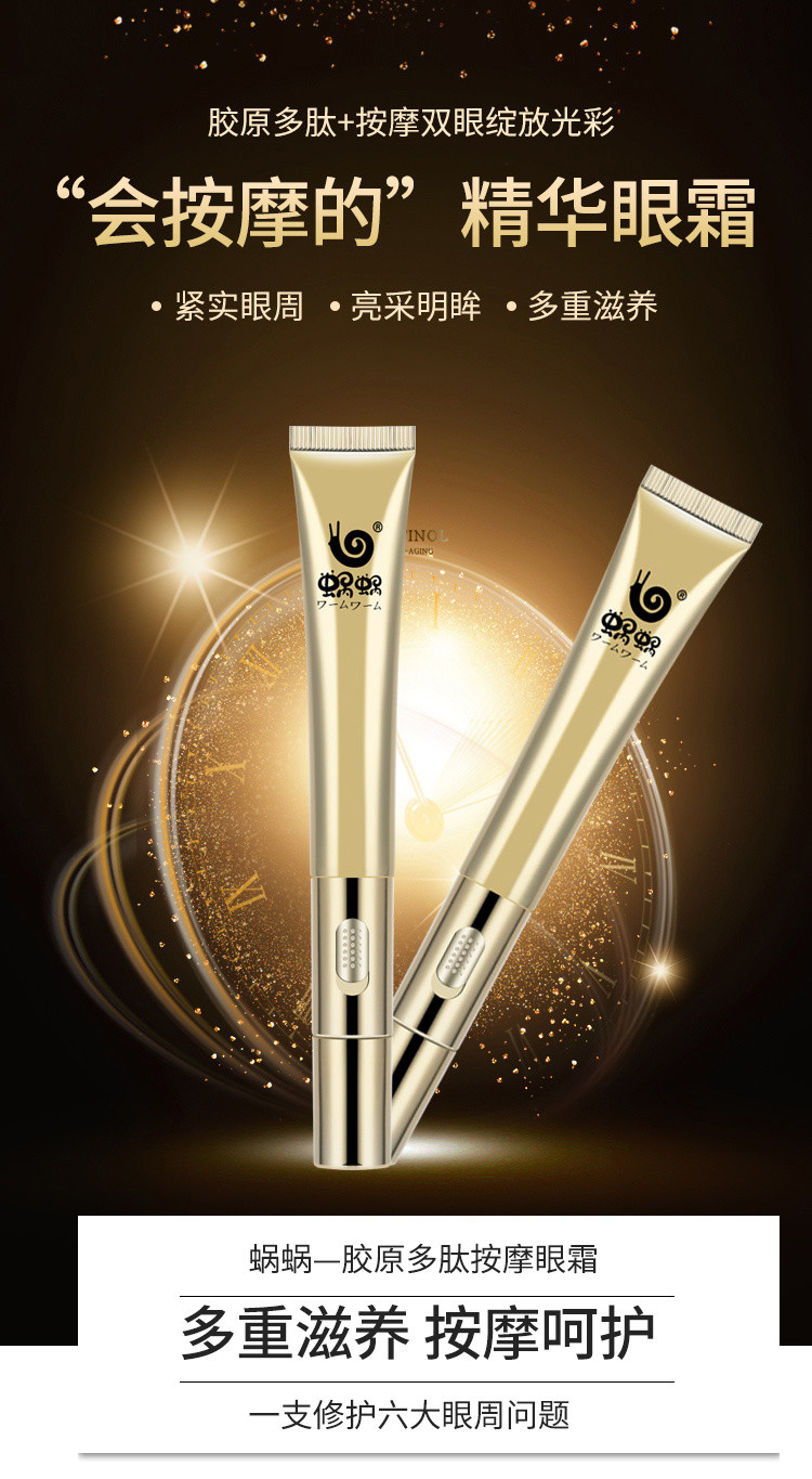 蜗蜗胶原多肽震动按摩眼霜紧致补水保湿淡化细纹黑眼圈眼袋脂肪粒